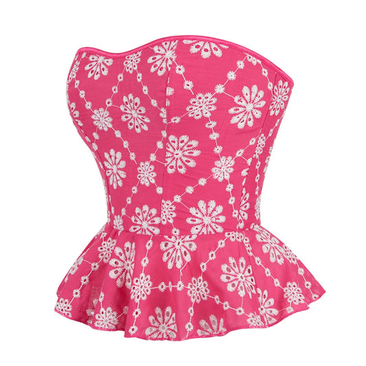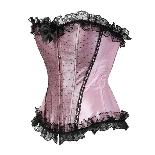Red Corset Top Plus Size Bustier Flower Lace UP Overbust Corselet Burlesque Sexy Lingerie Costume Renissance Women Pink