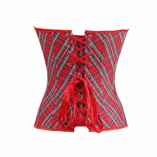 Gothic Corset woman Vintage Red Plaid Halter корсет Corselet top Punk Sexy Lace-Up Body Shaper Overbust Bustiers Lingerie