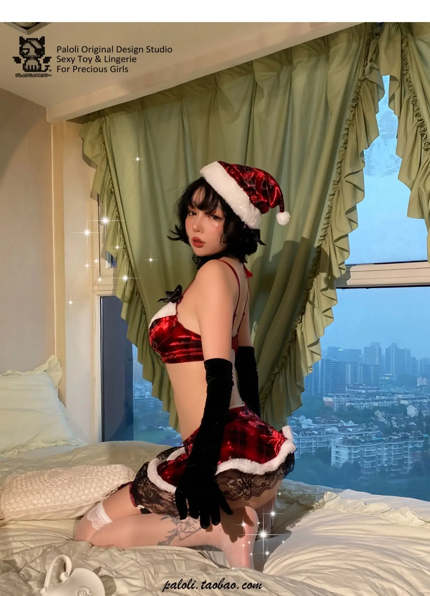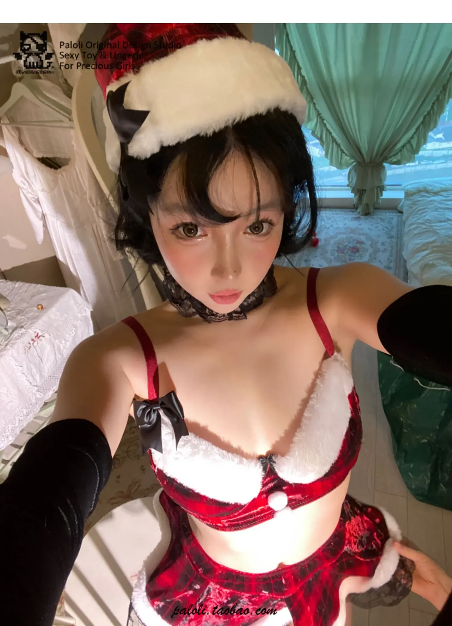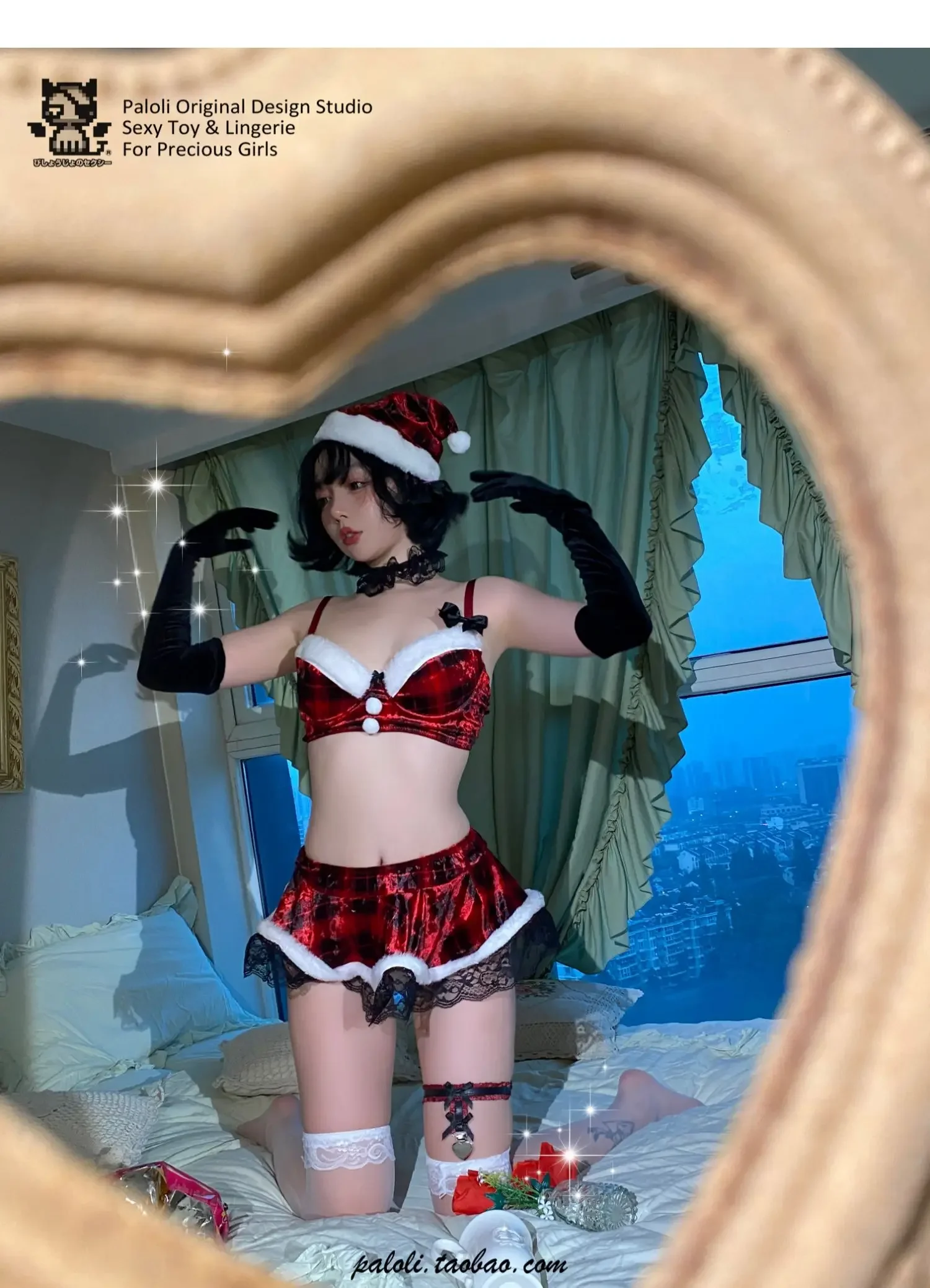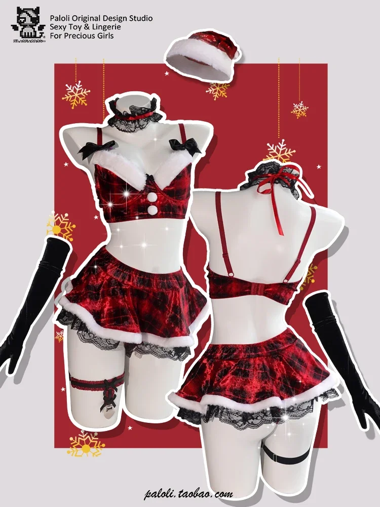Christmas Red Elegant Velvet Bra and mini Dress Set lady Santa Claus velvet Skirt sexy lingerie Witch Girls Lolita Uniform