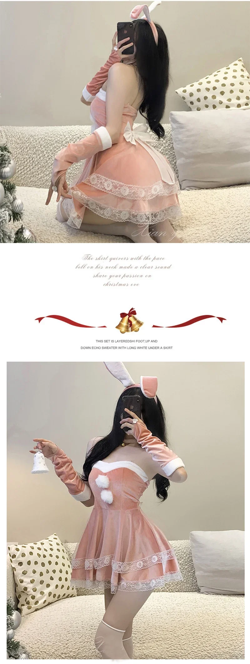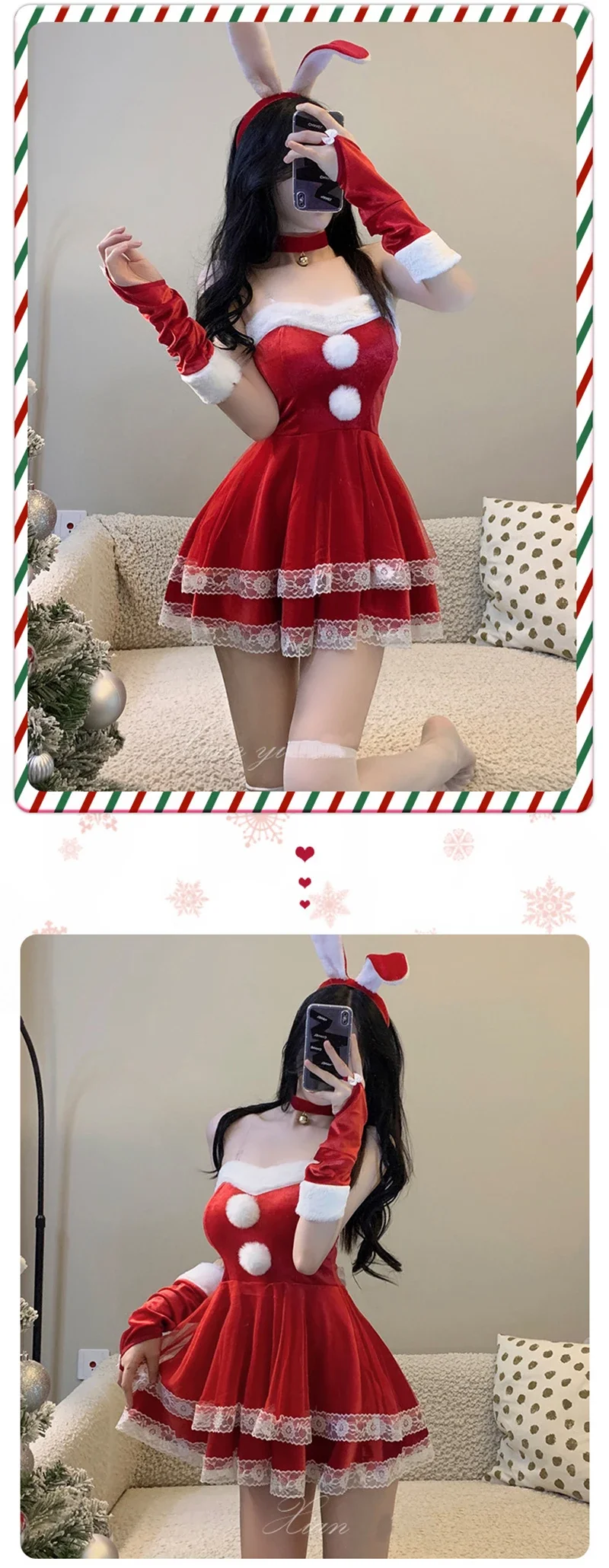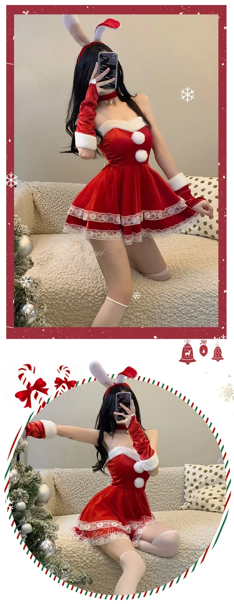 Christmas red woman dress sweet bunny girl costume rabbit woman set bunny suit sexy lingeries Lady cosplay New Year maid uniform