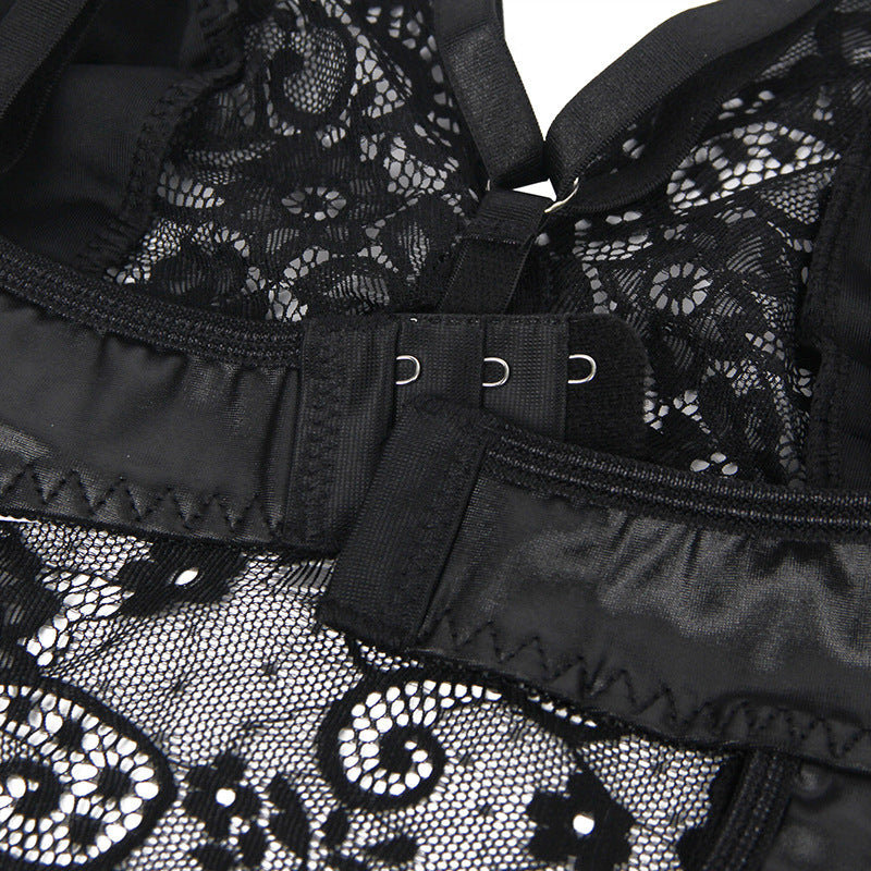 European And American Plus Size Lingerie Lace Leather Transparent Tempting Slip Nightdress