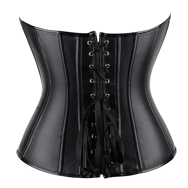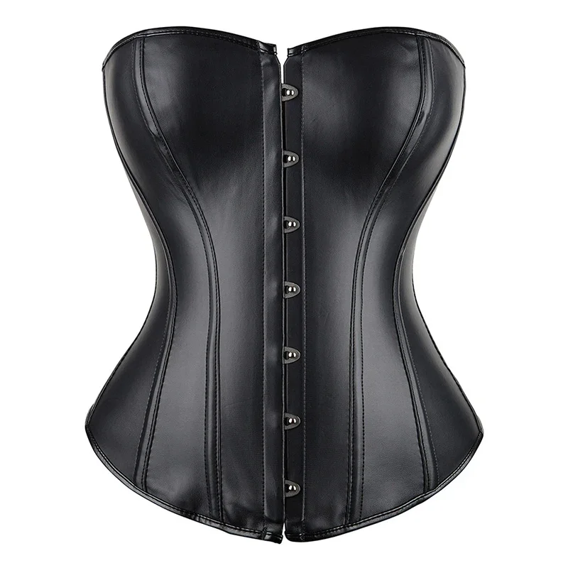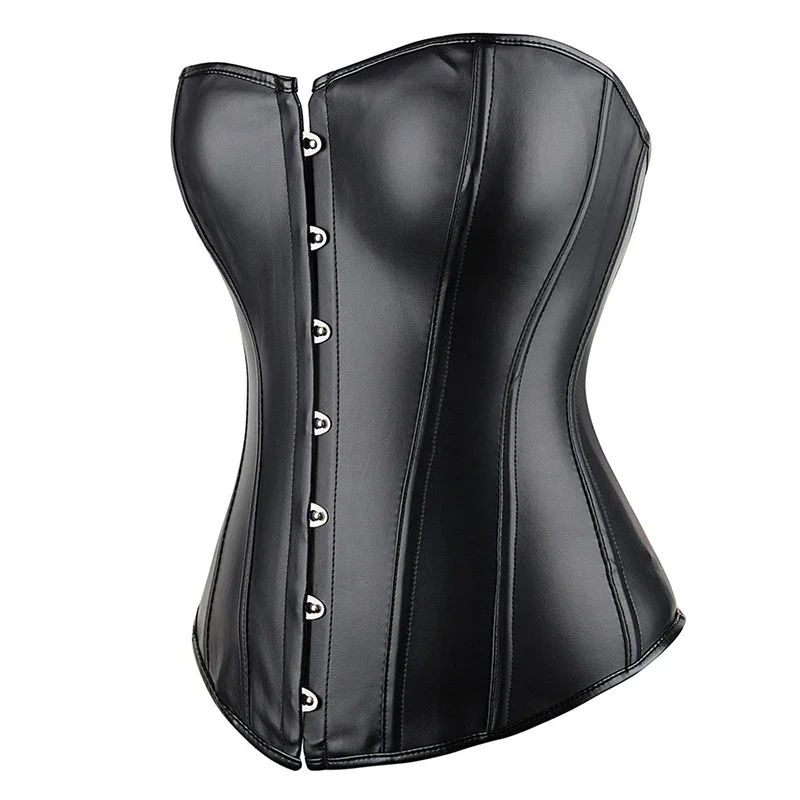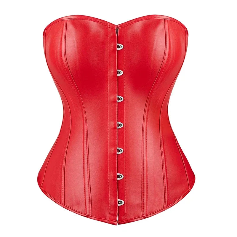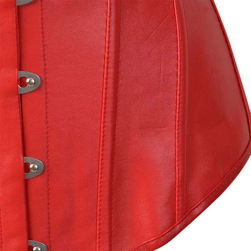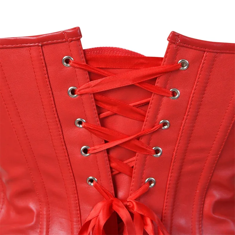 Faux Leather Corset Sexy Clubwear Bustier Hot Lingerie Zipper Overbust Corset Lace up Waist Cincher Top Plus Size Black Red