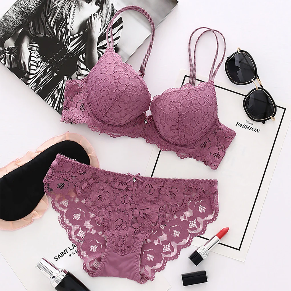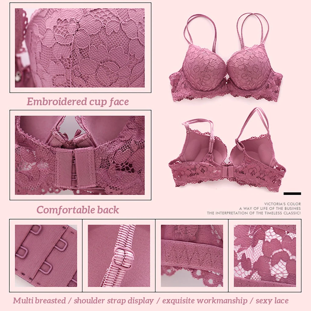 Push up bra set is breathable and lace material is skin-friendly and sweat-absorbent.