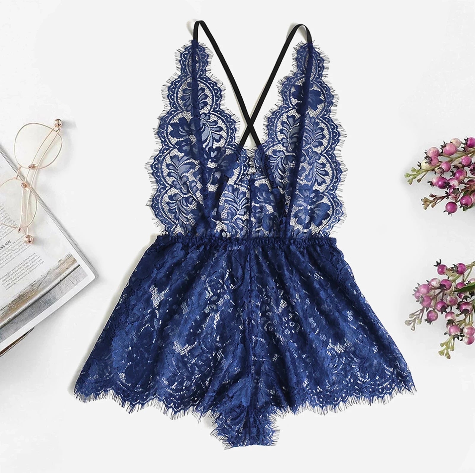 New Fashion 5 Colors Ladies One-Piece Pajamas Lace Lingerie Bodysuit V-Neck Backless Jumpsuit Pajamas Sexy Red Underwear 2021