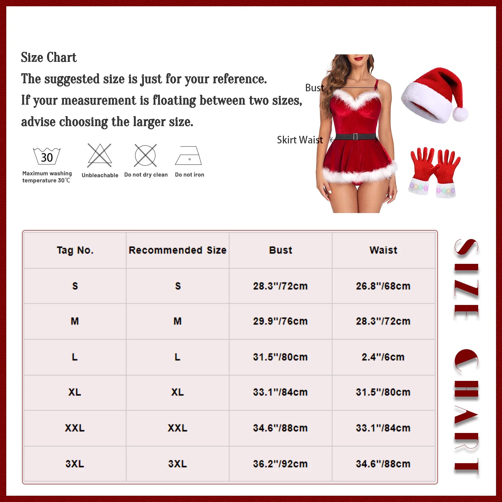 Sexy Christmas Lingerie For Womens Santa Babydoll Chemise Red Costume Adjustable Straps Dress with 4PCS Briefs Belt Hat Gloves