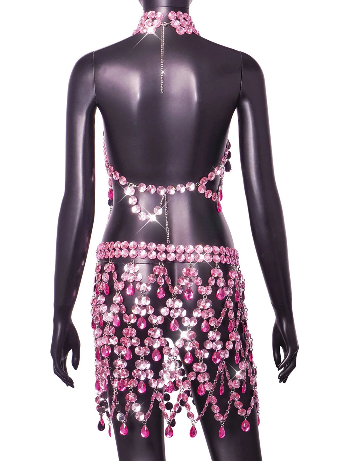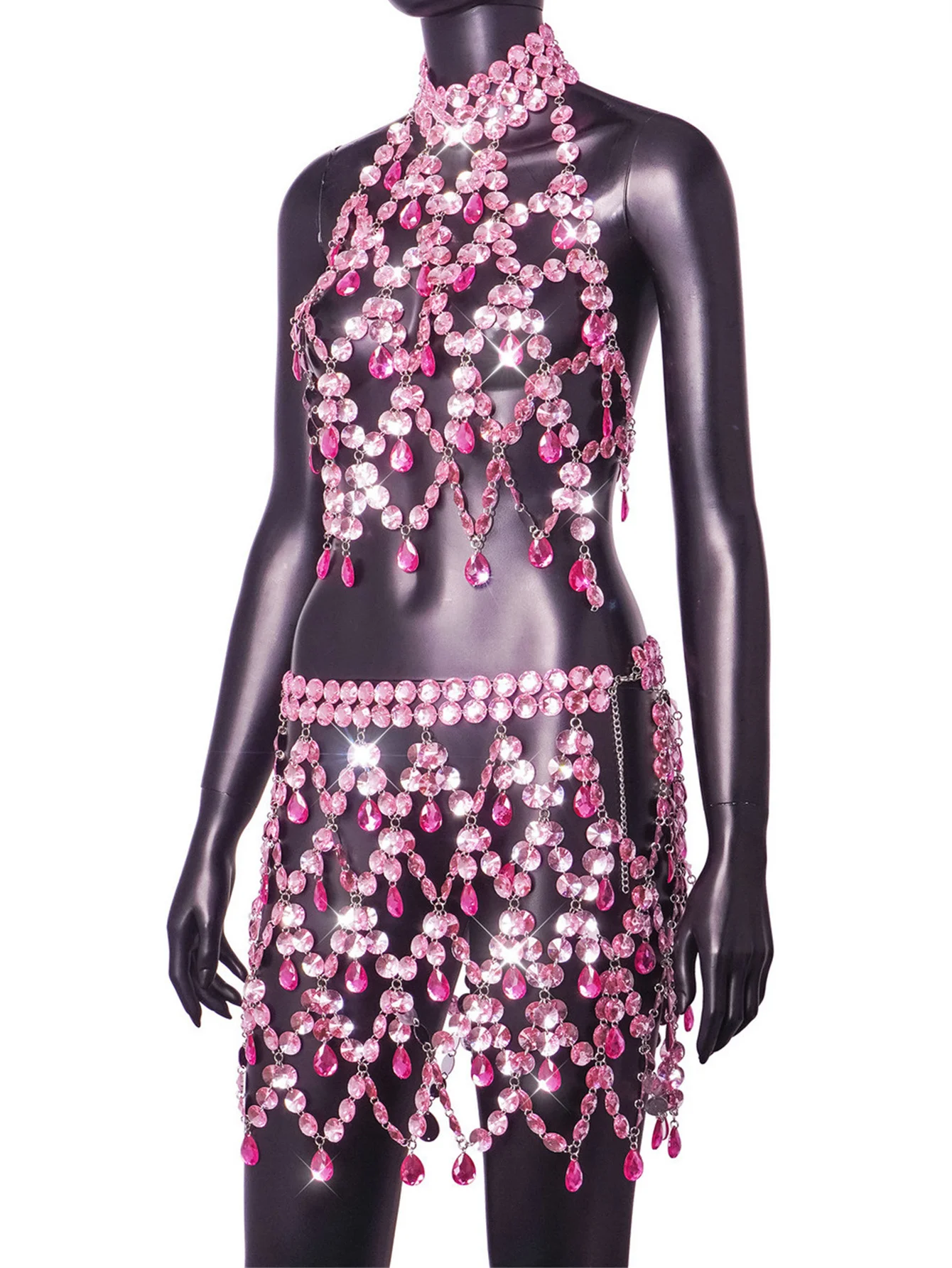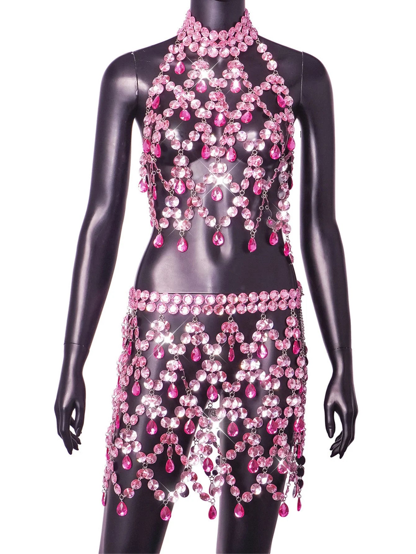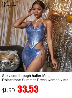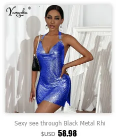 Sexy see through metal rhinestone summer dress women 2024 night club beach party dress backless bodycon mini dress sets vestidos