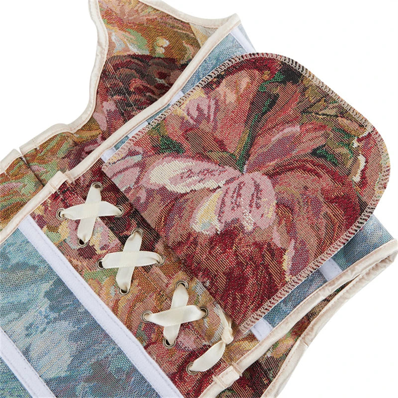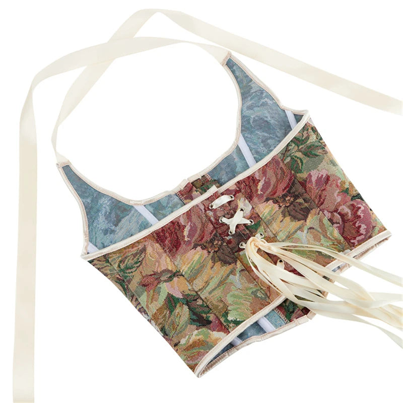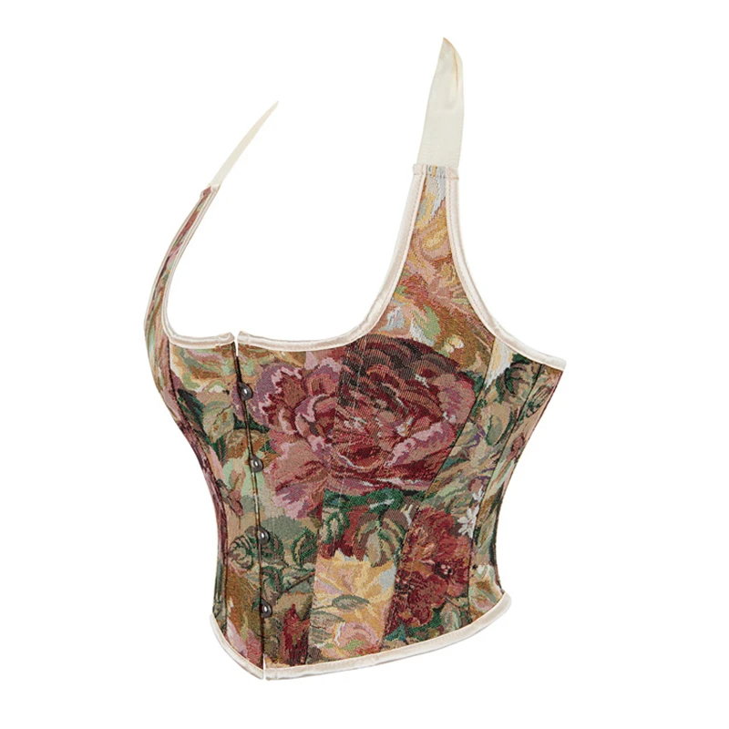 Sexy Women Corset Crop Tops Gothic Deep Red Printed Halter Backless Bustier Retro Body Shaper Lingerie Overbust Bustiers