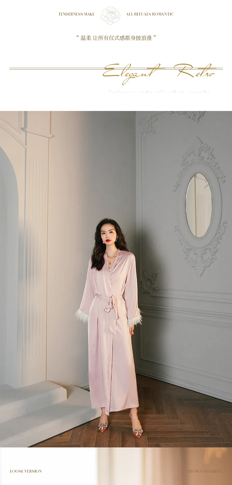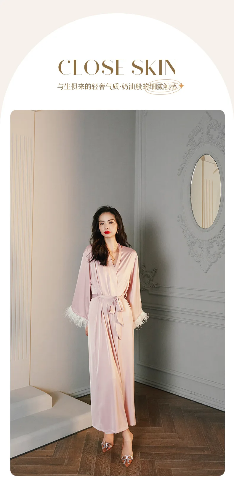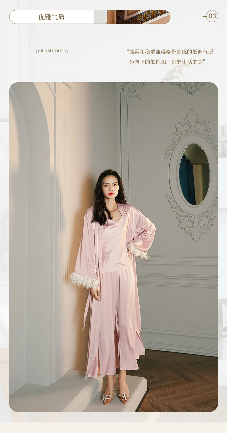 Women Long Nightgown red Bathrobe Gown Elegant Feather Sleeve Sleepwear Rayon Kimono Robe Set Loungewear Intimate Lingerie