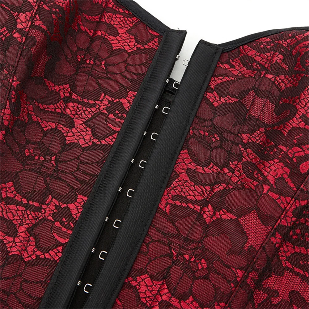 Women Overbust Corset Lace Flower Wine Red Sexy Lingerie Slimming Shaper Gothic Bustiers Crop Tops