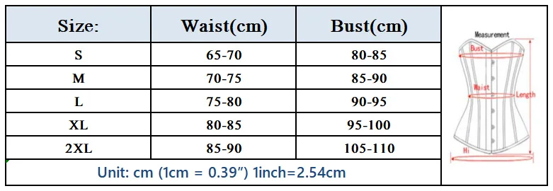 2. Corsets are sized by waist size, so please choose your corset according