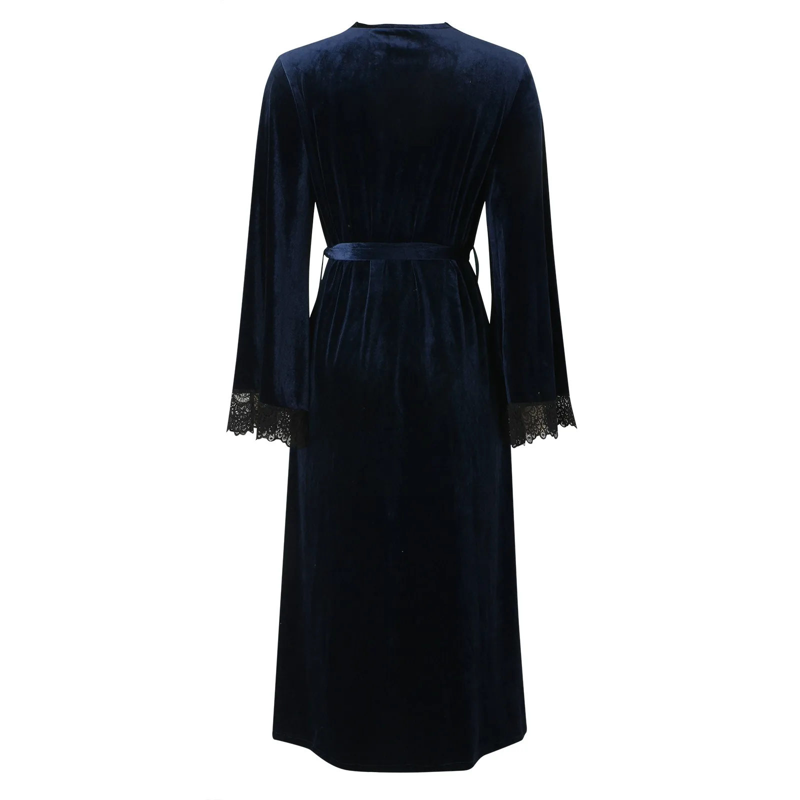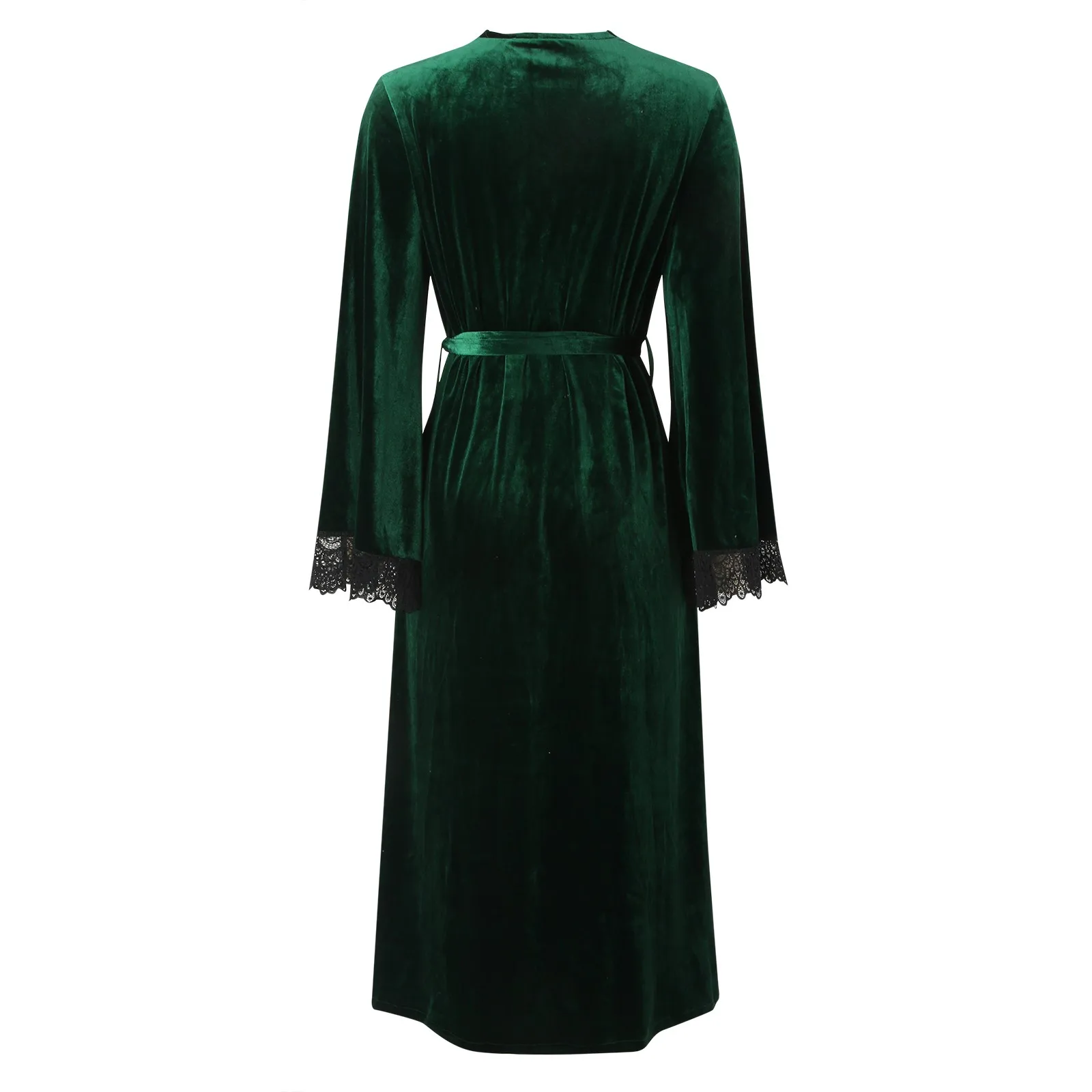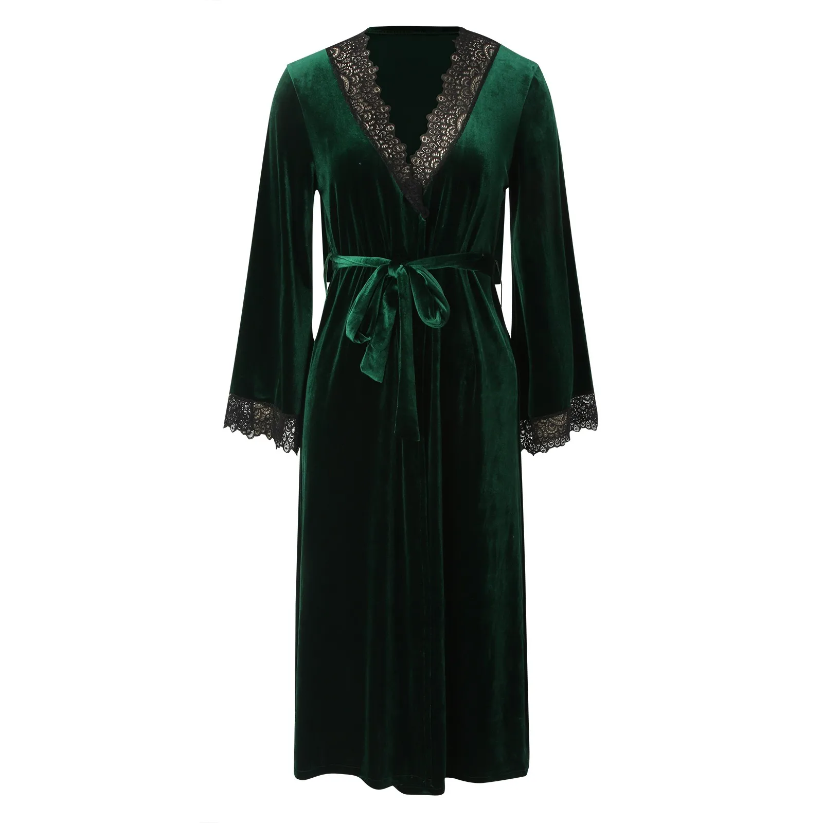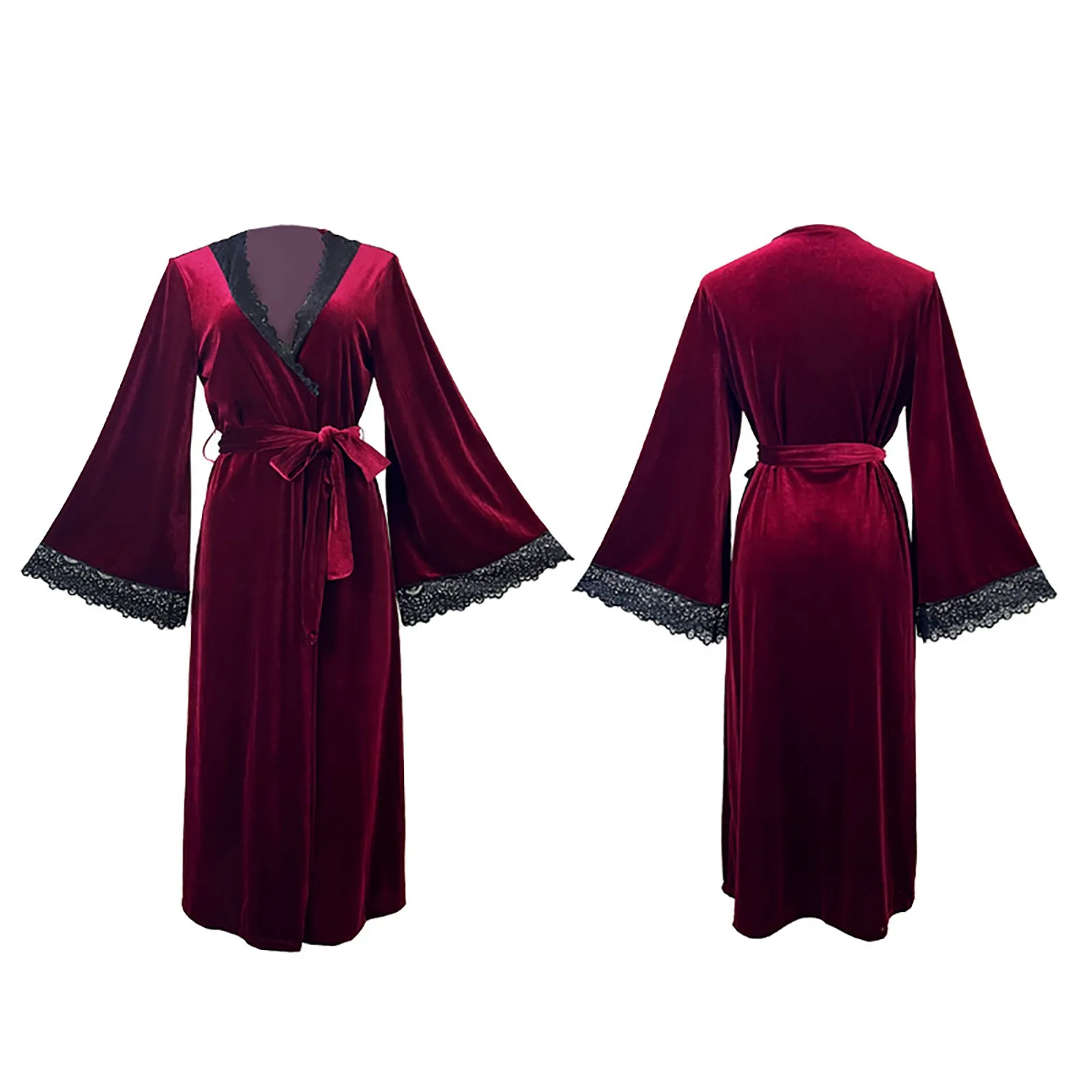 Women Sexy Lace V-Neck Bathrobe Nightdress With Belt Black White Red Long Sleeve Pajamas Robes Lingerie Sleepwear Nightgowns