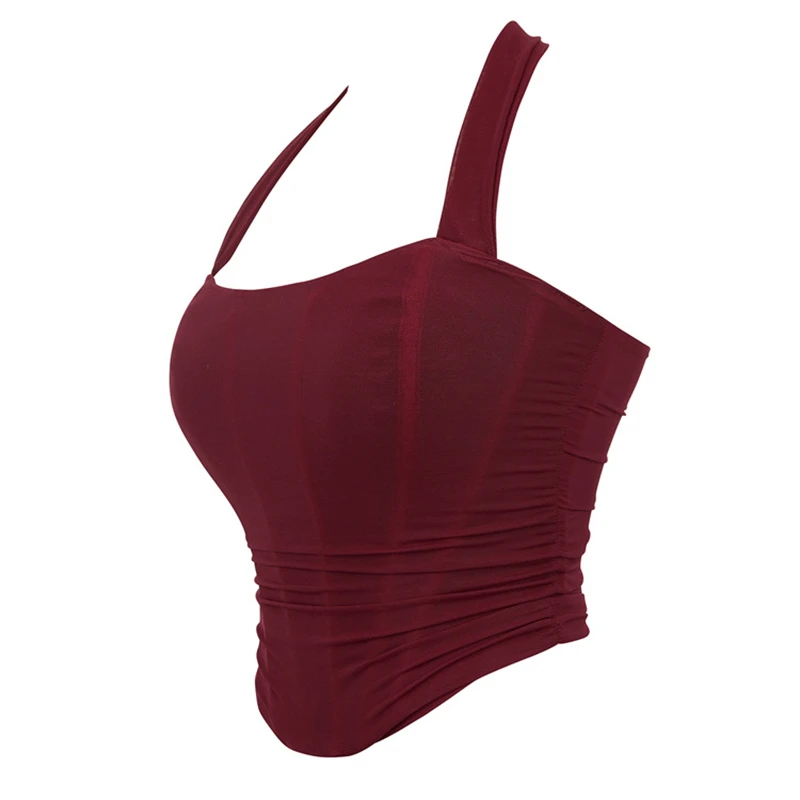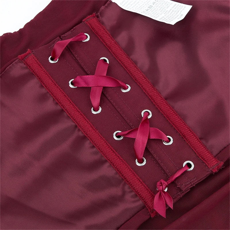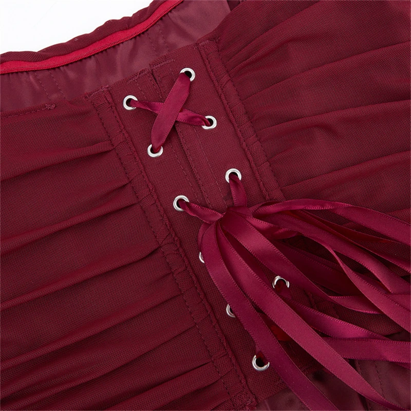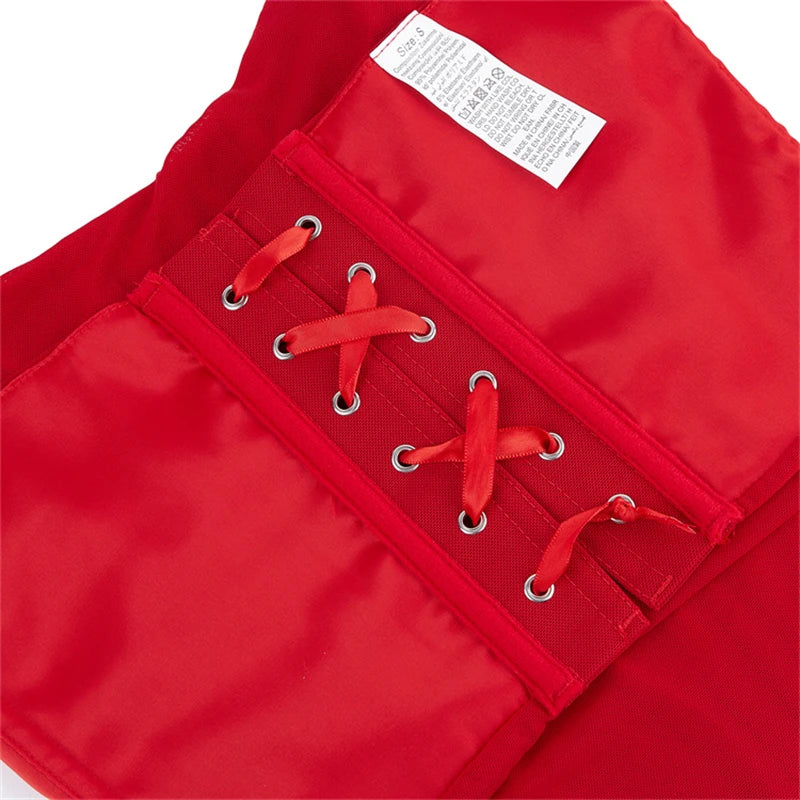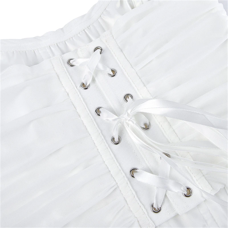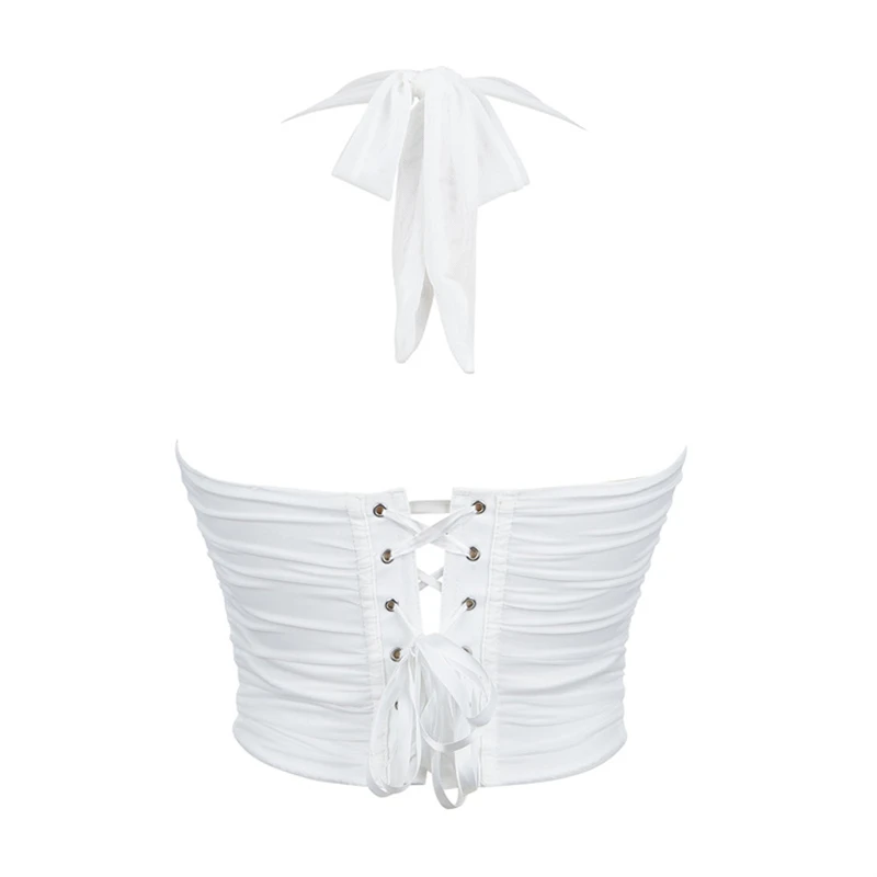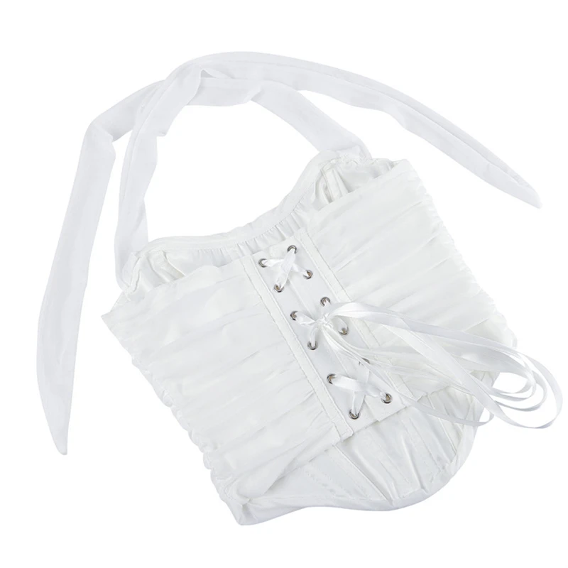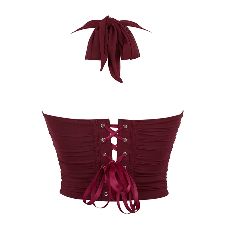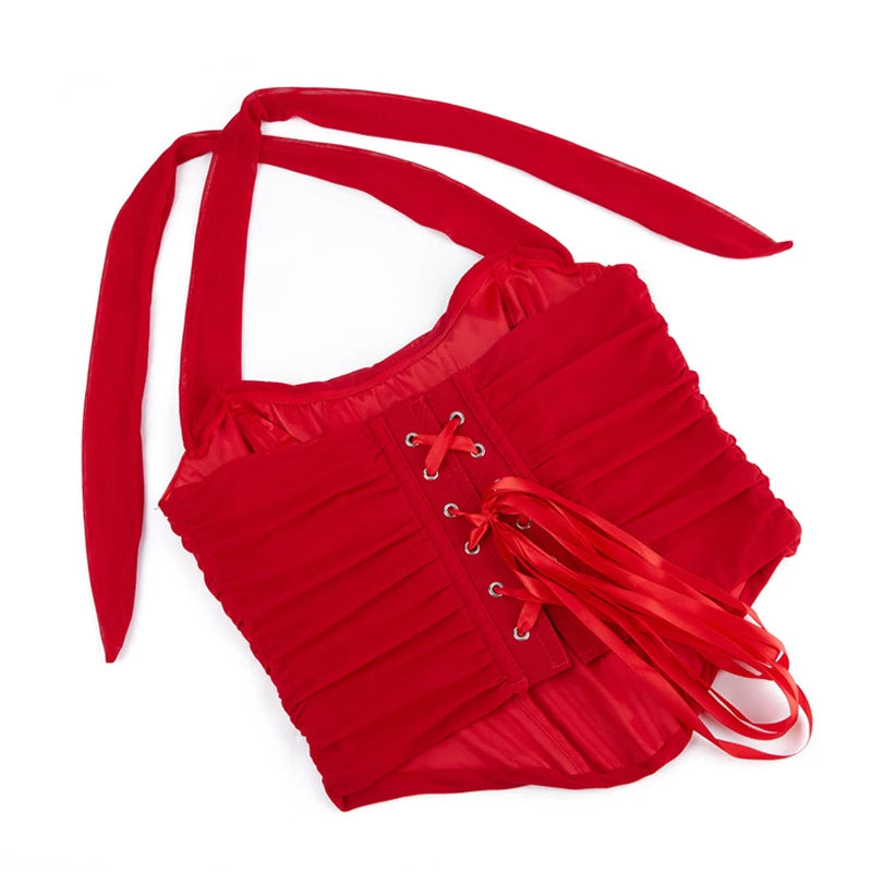 Women White Bustier Crop Tops Retro Fashion Halter Backless Lingerie Camisole Gothic Mesh Lace-up Corset Red